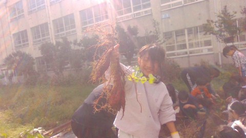 土から虫が出てきたり,地下茎が長くてなかなか抜けなかったりと悪戦苦闘していた分,おいもが出てきた時の喜びもひとしおでした。