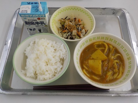 今日は主菜がカレーうどん,副菜が和風サラダでした。