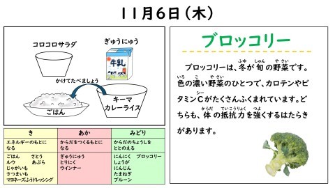 今日は,キーマカレーとコロコロサラダでした。なんといってもカレーは子どもの人気メニューです。お腹いっぱい食べてくれたことだと思います。