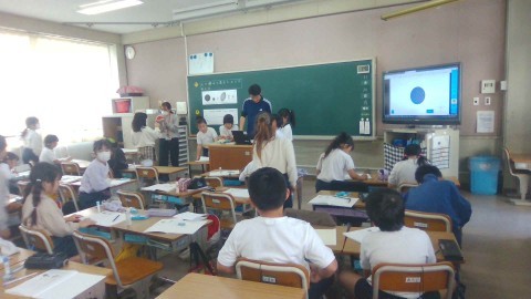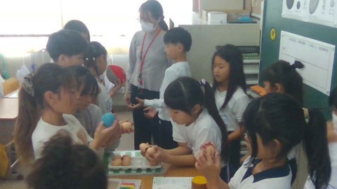 今日は,様々な形のボールや卵などを上から見たり,横から見たりして,どのような形のものが球というのかに迫りました。