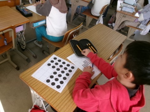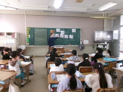 1組は算数でした。学習した「かけ算」を活用して数を考える勉強をしていました。いろいろな数のまとまりを作って考えていました。