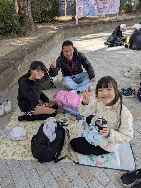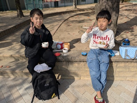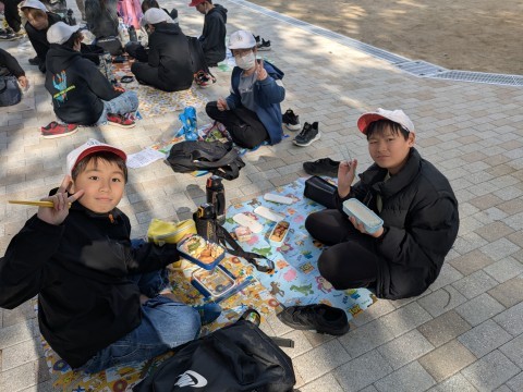 お弁当タイムです。みんな美味しいと言って食べていました。作ってくれたおうちの人に感謝ですね。