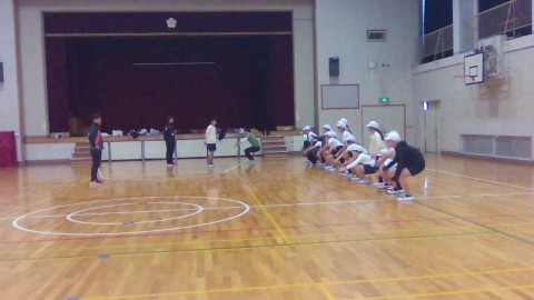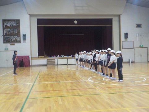 体育では,八田荘学校群の取組の一つとして今日から八田荘中学校の体育の先生に来ていただき,集団行動の授業をしていただきました。