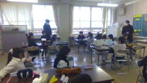 2組の生活では,紙ひこうきを遠くまでとばす工夫について話し合いました。