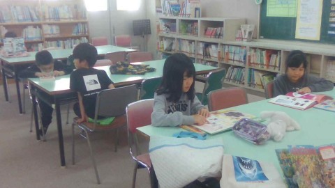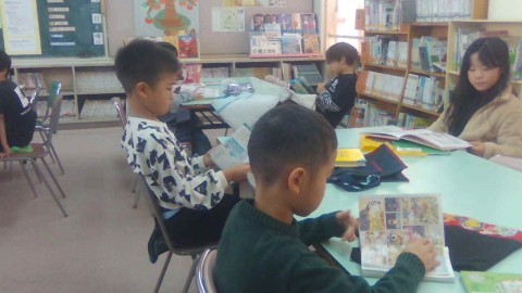 2組の図書では,先週借りた本を返却したあと,新しく借りたい本を選んで静かに読書していました。