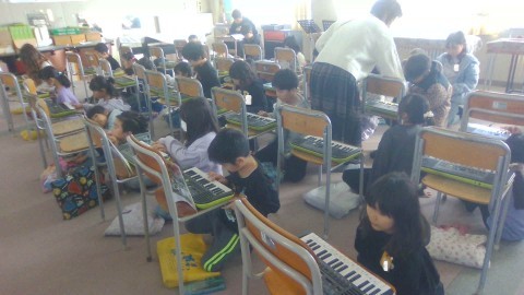 音楽では,「ゆかいな木きん」という曲をキーボードで練習しています。