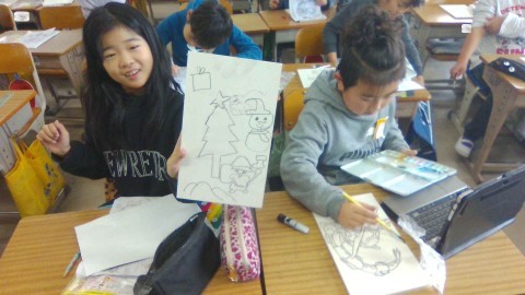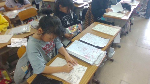 みんな,自分の好きなキャラクターや模様などを楽しみながら描いたり色塗りをしたりしています。