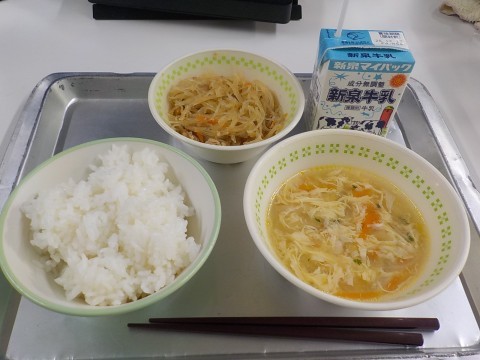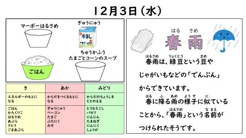 卵とコーンのスープも麻婆春雨もごはんとよく合い,おいしくいただきました。