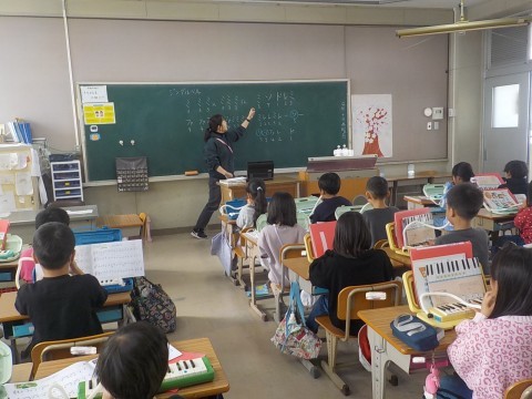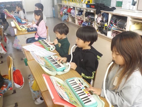 2組の音楽では,色々なクリスマスソングを鍵盤ハーモニカで演奏しました。