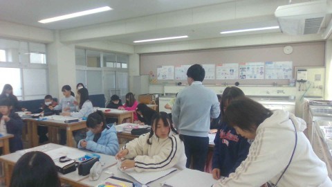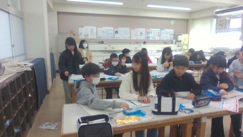 家庭科では,ナップザックづくりを進めています。
