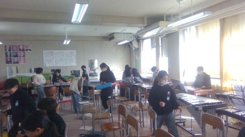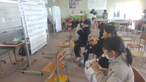 音楽では,楽器ごとの個人練習から合奏練習という流れで授業が進みます。