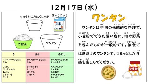 今日は中華メニューでした。ワンタンは子どもたちも好きなようで,楽しそうに食べていました。