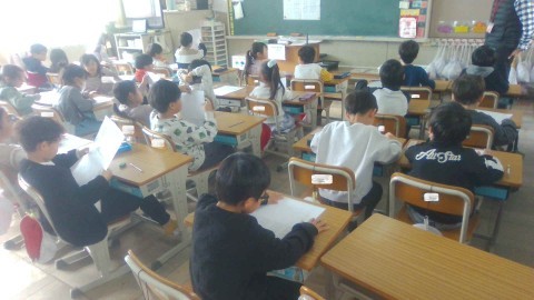 書写では,冬休みの書き初めの宿題の練習をしました。