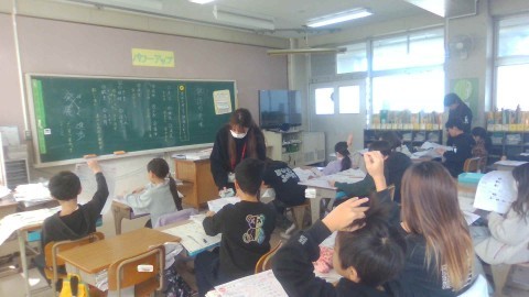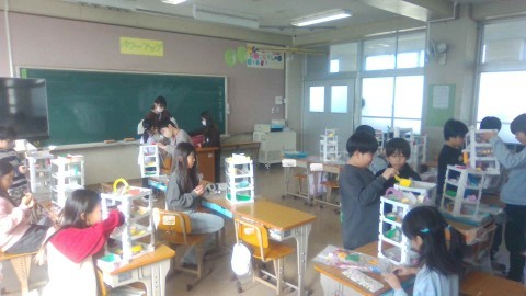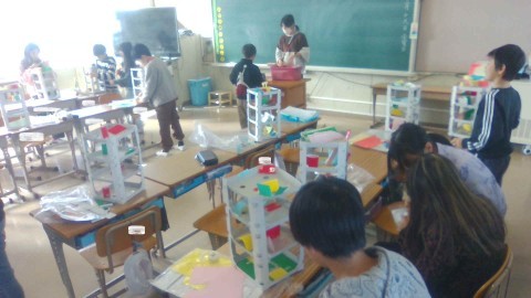 1組の図工では,ビー玉迷路を友だちと楽しんだり,改良したりしました。