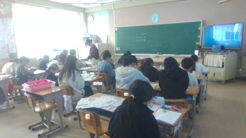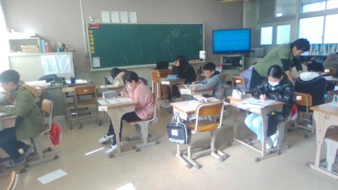 1組では社会のテストをしていました。