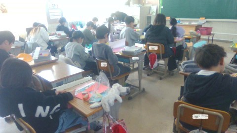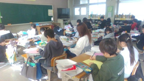 2組の図工では,ビー玉を使った迷路づくりに取り組みました。