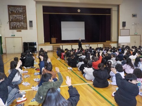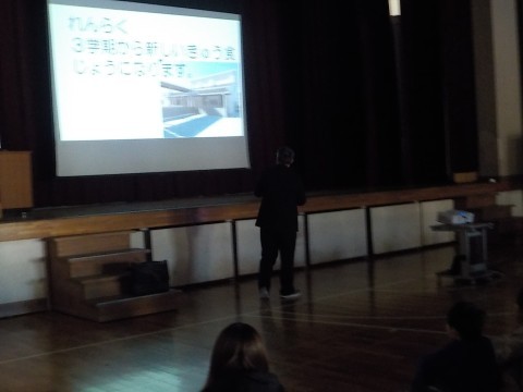 始業式では今年がんばりたいことを考えながら,校長先生のお話を聞きました。
