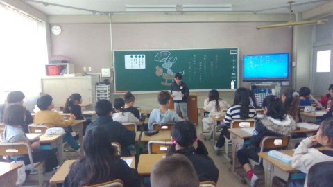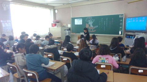 ビンゴゲームをしながら,出席番号(出た数)の順に冬休みの思い出を発表しました。