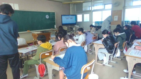 1組の外国語では,今までの学習をふり返って,ヒアリングなどのテストをしました。