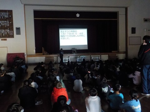校長先生からは,1995年1月17日に起こった阪神・淡路大震災の被害から,今後大きな地震が起こった時にどのような行動をとるか,一人ひとり考えていこうというお話がありました。