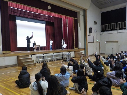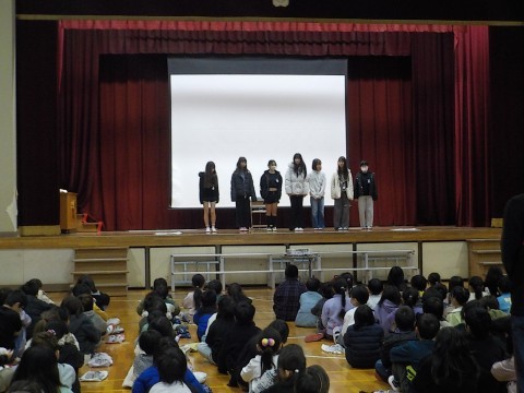 今日は体育館で全校朝礼がありました。