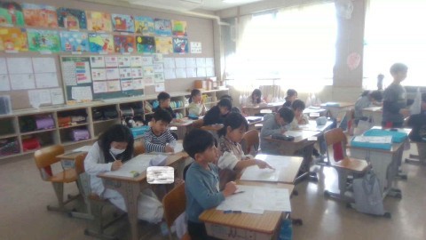 1組の国語では,「お話のさくしゃになろう」という学習をしています。