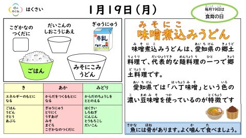 今日の大おかずは名古屋名物「味噌煮込みうどん」でした。それぞれの地域の名物を食べることで少しでも名古屋に興味をもってくれるといいですね。