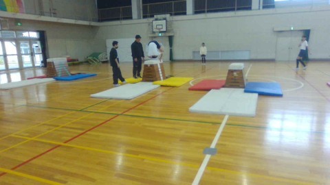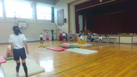 1組の体育では,台上前転の練習をしていました。