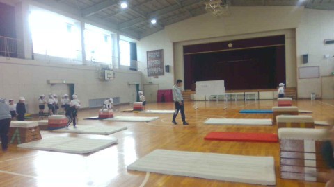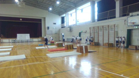 体育では,とび箱の練習をしています。