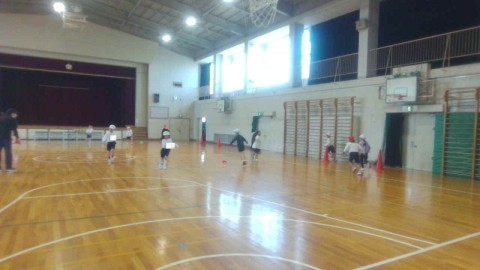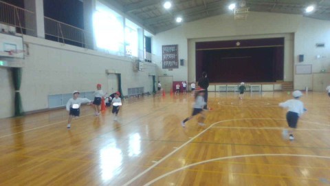 2組の体育では,準備運動で元気いっぱいにおにごっこをしていました。