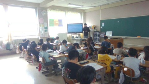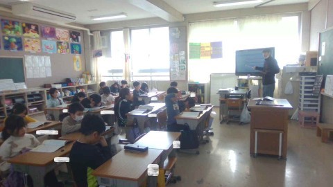 1組では図書の時間に学校司書の先生に読み聞かせをしてもらいました。