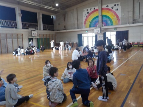 1/29 4年生 八田荘小学校との交流会 公開日 2026/01/29 更新日 2026/01/29 4年生 今日は12月に延期になった八田荘小学校の4年生との交流会を本校体育館で実施しました。お互いの学校紹介をクイズ形式でしたり、グループに分かれて自己紹介やハンカチ落としなどをしました。幼稚園やこども園などで一緒だったお友だちと久しぶりに会えて喜ぶ姿も見られました。いろいろご準備いただいた八田荘小学校の4年生のみなさん,先生方,楽しい時間をありがとうございました! +3