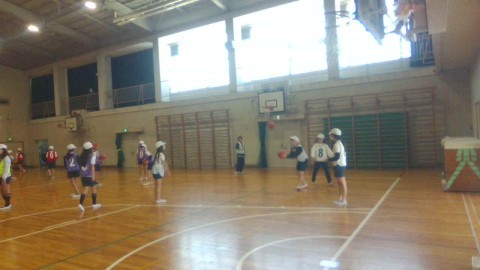 体育のバスケットボールでの学習では,パスからシュートをする流れを練習していました。