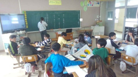 1組の国語では,班で調査したことを基に結果をポスターにまとめていました。