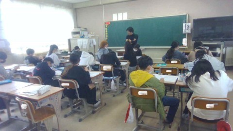 2組では,卒業式の呼びかけの練習をしていました。