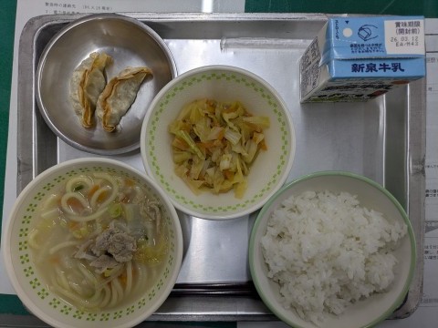 今日は中華メニューでした。豚骨ラーメンや餃子は子どもも大好きで,喜んで食べていました。