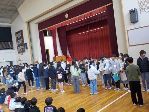 6年生に1年生から5年生までがお礼のメッセージを書いてプレゼントしました。