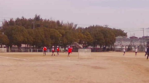 1組の体育ではサッカーのゲームを楽しんでいました。