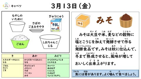 今日はさばのごまみそ焼きがでました。さばには頭をよくしたり生活リズムを整えやすくしたりする,DHAとEPAという物質が入っているらしいです。いっぱい食べてくれていると嬉しいですね。