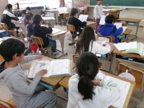 ここまでのプリントやテストを見ながら,1年間の学習を振り返っていました。