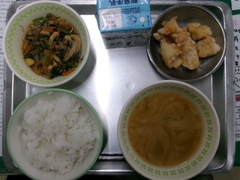 今日は鉄分たっぷりメニューとチキン南蛮,みそ汁でした。チキン南蛮が美味しくて,子どもたちは大喜びでした。