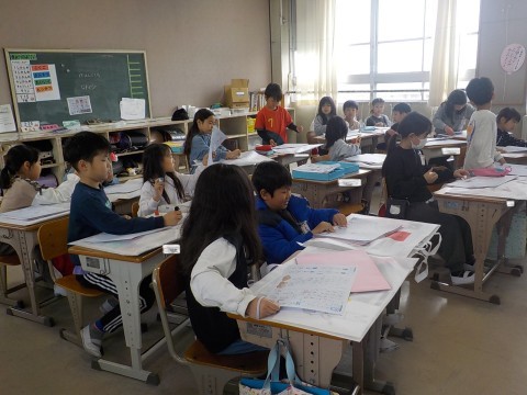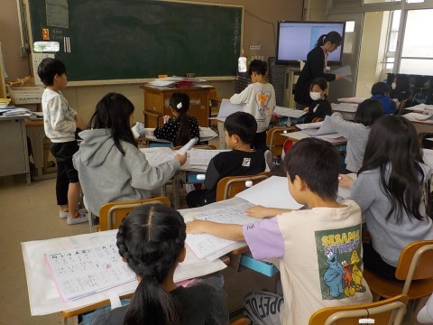 2組では2年生で学習した漢字をふり返り,漢字ビンゴをして楽しんでいました。