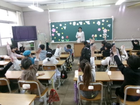 新しい教室で,担任の先生のお話をしっかり聞くことができましたね。