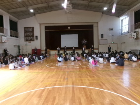 令和8年度 1学期始業式 のようす 公開日 2026/04/08 更新日 2026/04/08 学校行事紹介 始業式のようすです。みんなの凛々しい姿がとても印象的でした。校長先生や生徒指導の先生のお話,新しく来られた先生方の紹介や先生の担当の発表など,和やかに式が進んでいきました。 +1