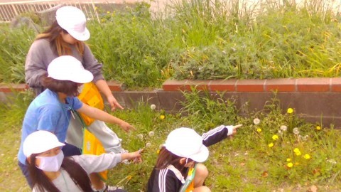 理科の授業で,学校の中庭や運動場にある虫や植物をさがしました。