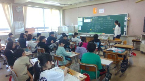 5年1組。算数の学習で0.001がいくつ分になるかを考えていました。