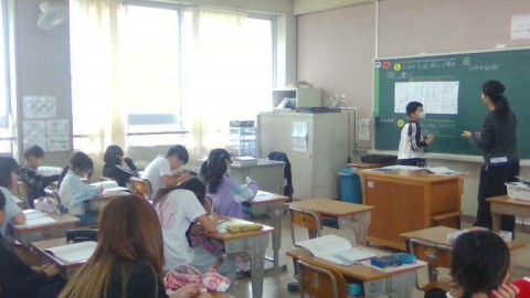 5年2組 算数。今日は小数点が左に移動していく内容です。発表もばっちりできていました。