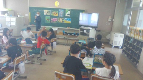 1枚目⇒3-1 理科の学習で春の生き物についてタブレットを使って学習していました。