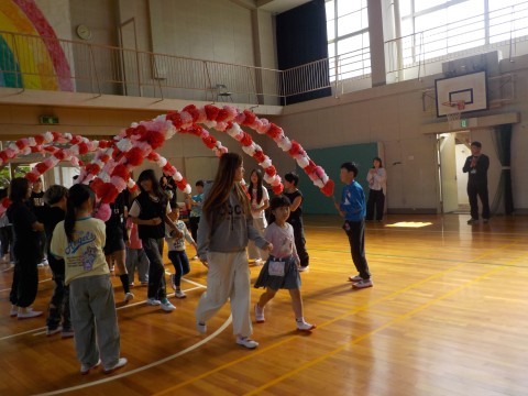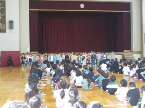 4/20 1年生お迎え式 公開日 2026/04/20 更新日 2026/04/20 学校行事紹介 今日は1年生のお迎え式をしました。1年生は少し緊張している様子でしたが,6年生と手をつなぎ,5年生が持ってくれていたアーチをくぐって入場しました。2年生の前で一生懸命メッセージを伝えたり,歌を歌ったりできました。 +1