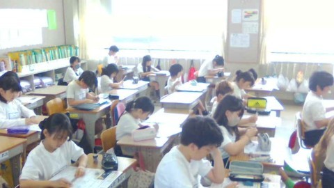 今日は算数のテストをしました。がんばって問題を解いていました。